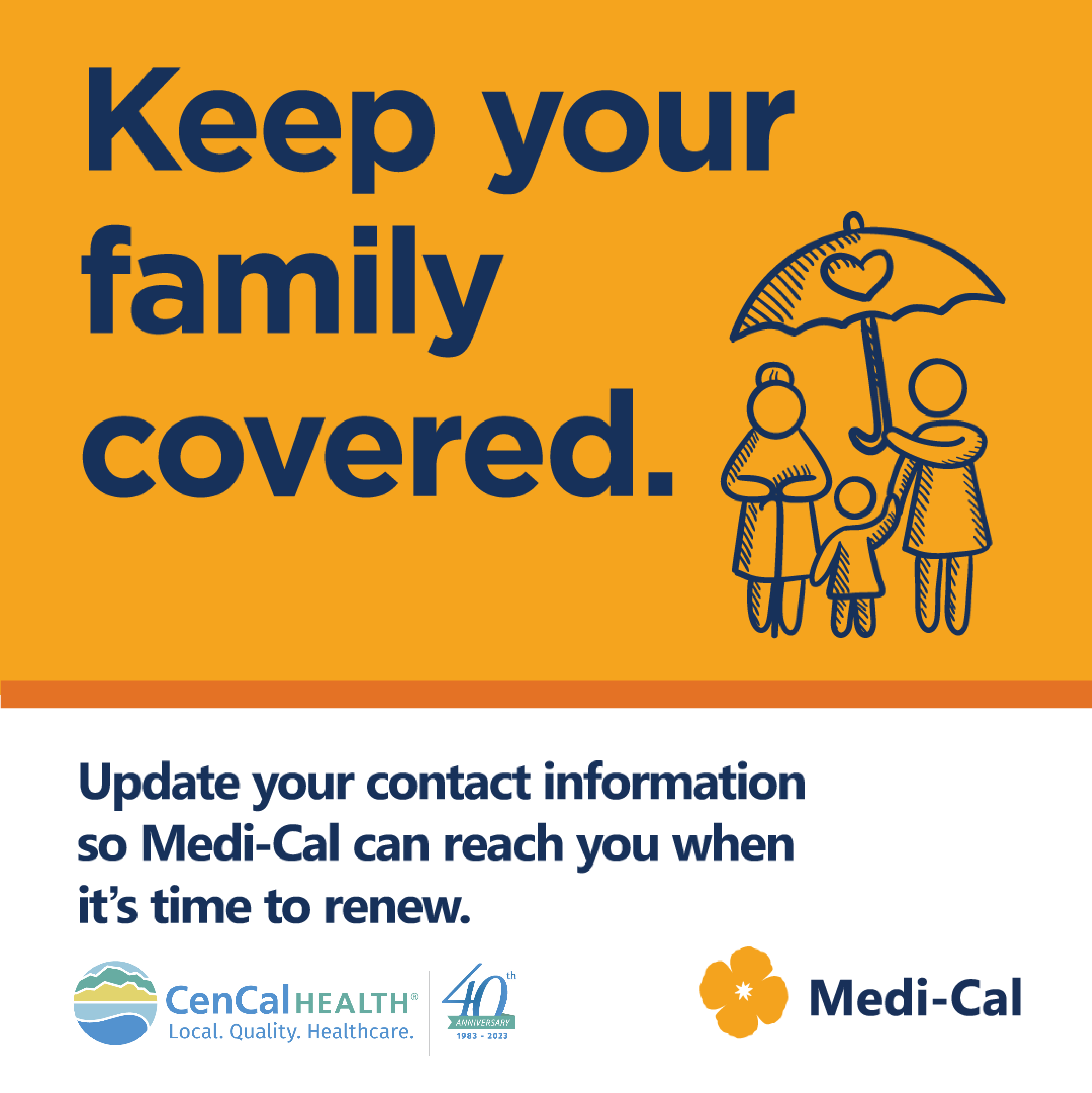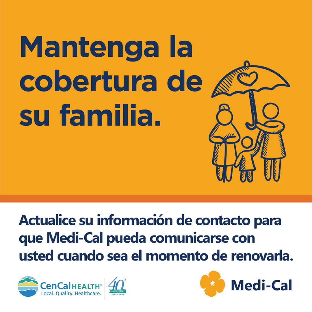 “CenCal Health, en cooperación con el DHCS, se compromete a asegurarse de que los afiliados comprendan el proceso de renovación y cómo tomar medidas para evitar interrupciones en la cobertura”, dijo Do-Reynoso. “La tarea sin precedentes de reanudar las operaciones de renovación después de la pandemia requiere educación pública, así como trabajo continuo con todos nuestros socios y proveedores de Medi-Cal”.